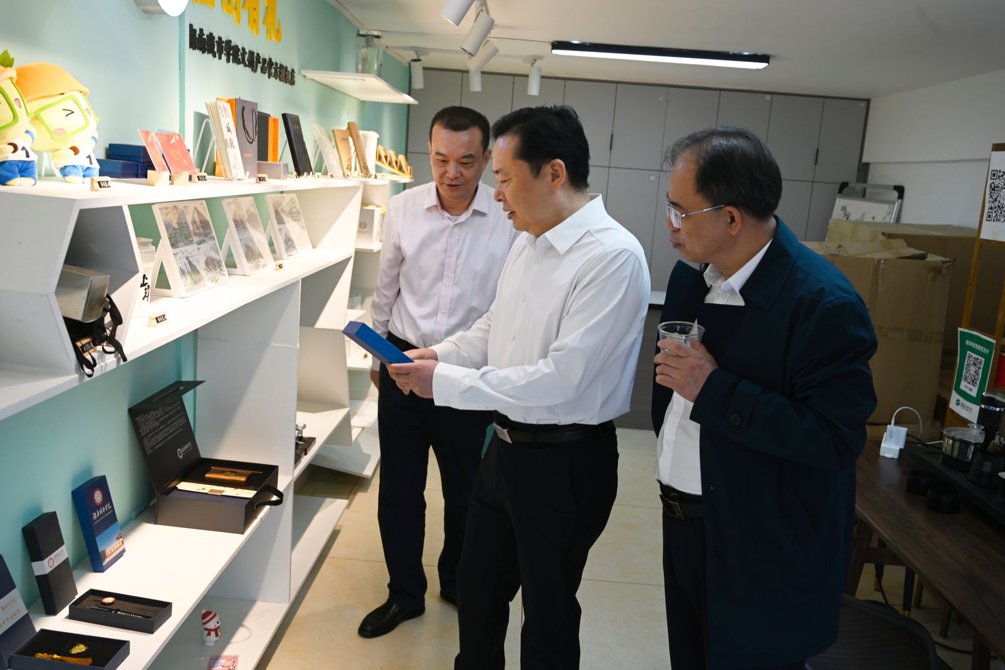 随后,熊炜一行参观了我校大学生创新创业孵化示范基地。该基地设置有19间学生工作室,自运行以来,先后入驻了120多个大学生创新创业项目团队,创办企业10余家,直接参与创新创业实践学生1100余人。参观过程中,熊炜与各创业团队深入交流,详细了解创业过程中的难点堵点,勉励同学们持续保持创新创业热情,将创新创业项目作为长期事业来发展,希望更多青年学子留在益阳这块热土上建功立业。他叮嘱学校坚持把促进就业创业作为重中之重,为大学毕业生孵化梦想创造条件、施展抱负搭好舞台。