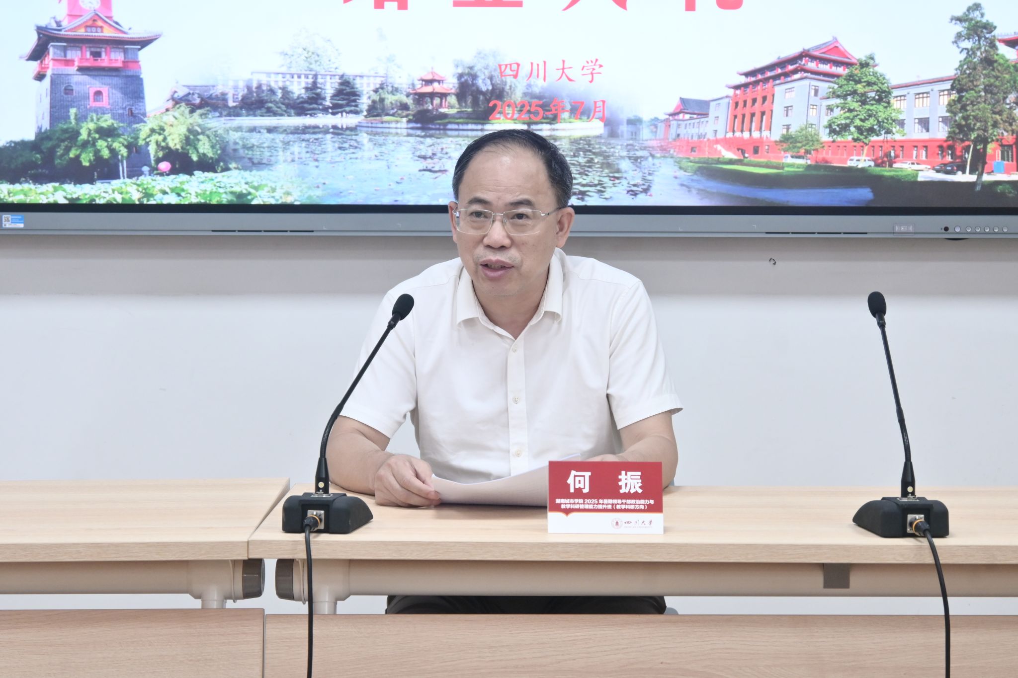 本网讯为进一步强化学校领导干部的政治修养,全面提升教学科研管理能力,7月14日至19日,我校在四川大学举办2025年暑期领导干部政治能力与教学科研管理能力提升班,校领导何振、谭献良、徐姝、孙倩、吕贤军及部分职能部门负责人和二级学院院长、副院长共40余人参加培训。此次培训历时6天,采用专家讲座、现场教学、学习研讨等多元化形式,为领导干部“充电赋能”。