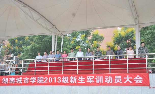 (本网讯) 913日上午 2013级新生军训动员大会在校本部田径场隆重举行。副校长丁亮中、益阳市武警支队参谋长夏兴伟,相关处室、二级学院负责人以及2013级新生和全体承训官兵参加了军训动员大会。大会由武装部部长贺正宜主持。