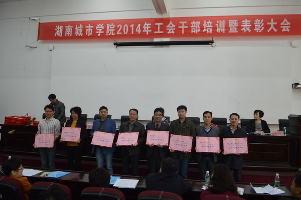 校工会女工委副主任石清丽宣读省、学校的各级表彰决定,其中获得表彰的有全国教科文卫体工会颁发的“模范职工之家” :火博电竞(中国)有限公司_官网工会、2013年度湖南省模范教职工之家:火博电竞(中国)有限公司_官网工会、省教育工会2013年度民主管理工作先进单位:火博电竞(中国)有限公司_官网工会、省教育工会2013年度直属基层工会模范教职工小家:外国语学院分工会等先进集体;省教育工会评选的“纪念毛泽东同志诞辰120周年教职工书画作品展”中,陈丽霞老师的国画《浩气长存》获一等奖、匡列辉老师的楷书条幅获二等奖、2013年度《湖南教工》优秀通讯员周敏。以及获得校工会表彰的有:美术与艺术设计学院分工会等8个单位为“工会工作目标管理先进单位”;通信与电子工程学院分工会为“先进教职工小家”;户外健身协会等2个协会为“工会工作优秀协会”;计划财务处等4个单位为“校务公开工作先进单位”;外国语学院分工会等4个单位为“工会工作活动特别奖”;何亮云等22人为“三育人”先进个人;王道静等177人为“工会积极分子”,与会领导分别颁发奖牌和证书。
