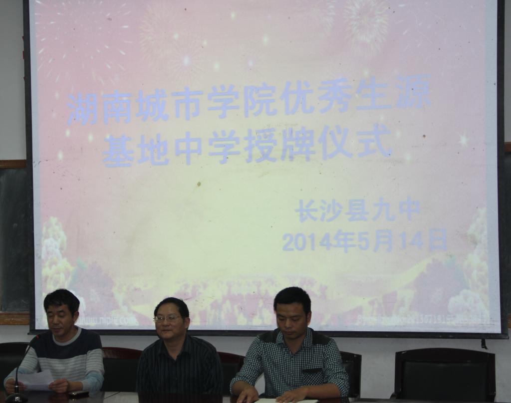 (本网讯)为进一步巩固和加强优秀生源基地建设,加强我校与县级以上重点中学的联系与合作,吸引更多优秀生源,5月15日上午,我校正校级督导范志超以及招生就业处相关负责人一行5人赴长沙县第一中学、第九中学签署了《火博电竞(中国)有限公司_官网优秀生源基地协议书》,并向优秀生源基地负责人授牌。