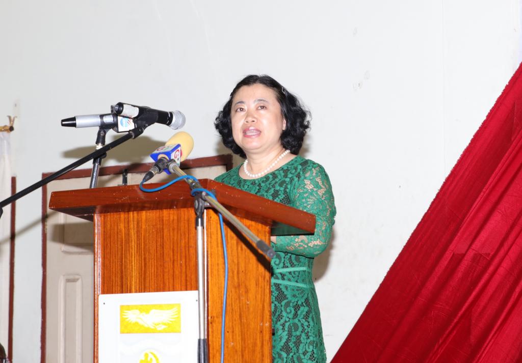 中国驻加纳大使馆孙保红在会上讲话。她说:“随着中加两国经贸往来的不断升温,有越来越多的加纳人对中国的语言文化、社会经济和发展模式产生浓厚兴趣,愿意去中国留学,和中国人交朋友。海岸角大学孔子学院的建立正逢其时,具有重要意义。它将进一步深化和增强中加教育的交流与合作;进一步促进中加文化交流;并将为中加经贸合作提供有力支持。作为中国驻加纳大使,我希望海岸角大学孔子学院能够笃志汉语教学,传播汉语和中华文化;丰富课程内容,创新管理理念;培养高端汉语人才,将孔院打造成中加文化交流中心。驻加纳使馆会全力支持海岸角大学孔子学院的发展,积极争取增派汉语师资和奖学金名额让更多加纳学子享受更优质的教学资源。”