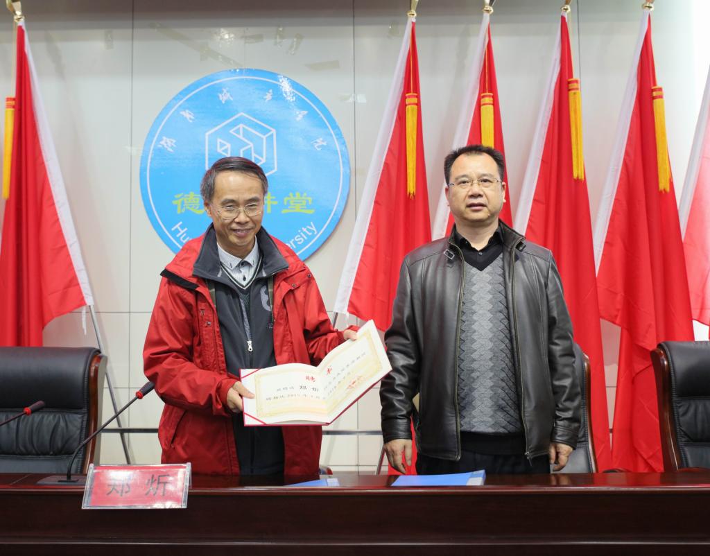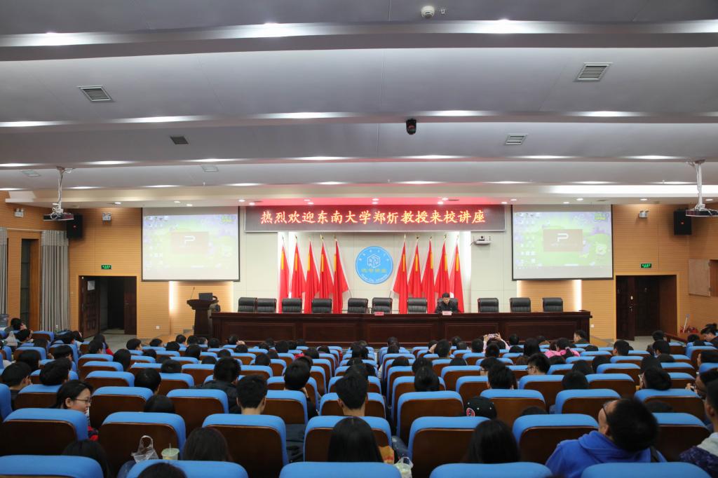 讲座之前,李建奇为郑炘教授授聘书,聘任郑炘教授为我校客座教授。郑卫民为郑炘教授佩戴了火博电竞(中国)有限公司_官网校徽。郑炘表示非常荣幸成为火博电竞(中国)有限公司_官网的一员,并将为学校的发展贡献自己的一份力量。