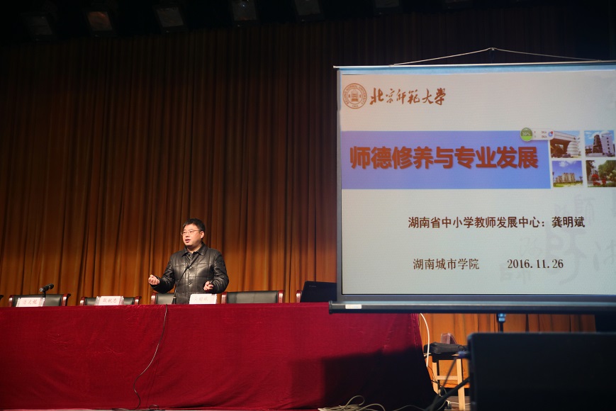 此次培训是我校继续教育学院承担的“国培计划”(2016)“送培到县”示范性培训项目。该项目以“突出师德、立足课堂、服务课改、服务教师”为宗旨,由一线教学名师、省级骨干教师、特级教师构成的送教团队,以提升教师课堂教学能力为核心,采取“师德巡讲、同题异构、互动研讨、专家讲座”的培训模式,促进益阳市中小学教师整体素质和专业能力全面提升。