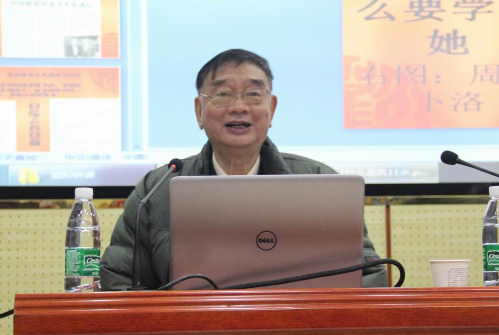 随后,于希贤着重介绍了东方科学文化体系。他认为,东方科学文化体系中提及大自然在形态上都是和谐、对称、平衡的,并以拥有严格对称结构的冰晶、用料精细形状精美的鸟巢等一系列例子作了说明。于希贤详细讲解了和谐环境与美好心境如影随形的中国梦——中国风水的人居环境艺术。他说,洞庭湖是自古以来最有名的湖泊之一,它的灵气就是水,而围湖造田则破坏了它的灵气,应将河两岸回归到最原始的自然生态区。于希贤强调中国古代的人和环境之间的梦,集中体现在《鲁班经》里,并举例说明。他指出,北京故宫祈年殿的内主柱,四根内主柱代表春夏秋冬四季,寓意了时空合一,依大自然四时运行和大顺来安排人居环境。在讲座中,于希贤多次表达了对年轻学子们的期望,希望他们在学好科学文化知识的同时,传承好我国的传统风水哲学文化。(汤慧、陈诗涵、周玥含)