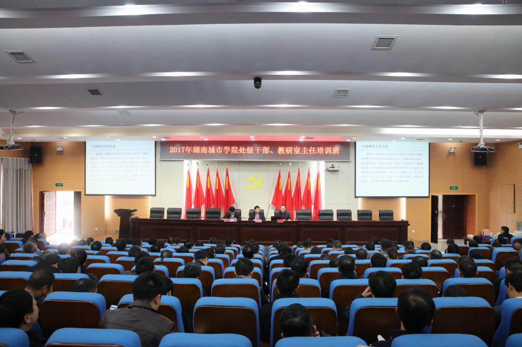 (本网讯)为进一步加强干部教育培训工作,增强干部的责任感和使命感,全面推进学校的改革发展和“双一流”创建工作,2月16日至17日,学校在图书馆报告厅举办了为期一天半的处级干部、教研室主任培训班。校领导罗成翼、李建奇、汤放华、夏宏宇、姚春梅、刘辉煌、雷存喜、谭献良、罗新湘、范志超出席培训会,全体处级干部和教研室主任参加培训会。
