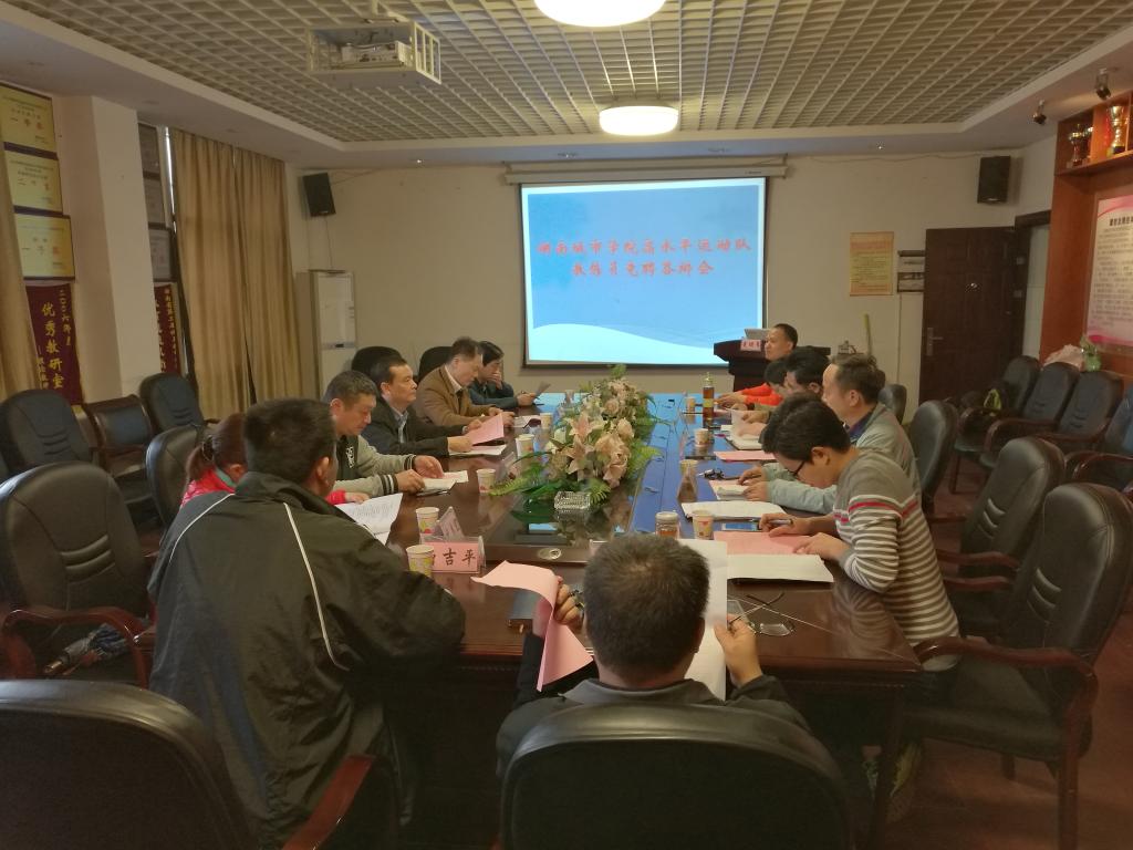 (本网讯)为备战2018年湖南省第十一届省大学生运动会,力争在省大学生运动会上取得优异成绩,4月9日上午,我校高水平体育运动代表队主教练竞聘大会在体育学院会议室召开,副校长雷存喜,湖南省教学指导委员会委员、长沙学院体育部部长曾一兵教授,湖南省教学指导委员会委员、长沙师范学院体育系主任陈捷教授,教务处相关负责人、体育学院班子成员出席会议并担任竞聘专家。