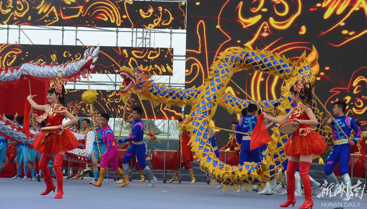 (本网讯)4月7日,中国·益阳首届洞庭湖生态文化旅游节系列活动首场盛会,中国·湖南(南县)首届国际涂鸦艺术节暨洞庭湖生态旅游美食文化节在南县罗文村洞庭之心中央广场盛大开幕。我校体育学院的男、女两支舞龙舞狮队在王高山教练的带领下应邀参加了本次开幕式,并表演了开场秀。