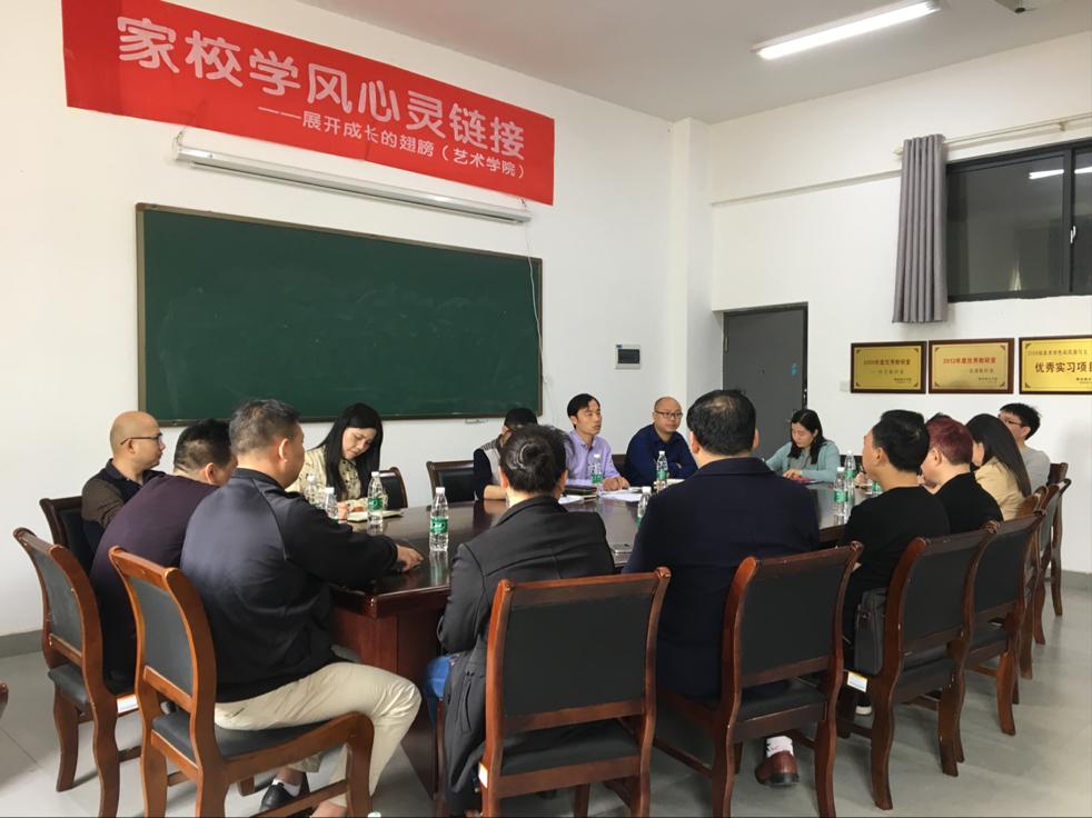 (本网讯)4月18日,艺术学院邀请了12名学生家长来校,与学生处、艺术学院学工负责人、辅导员、班主任、学生就学风建设问题进行了交流与座谈。此次活动也是该院落实学风内涵建设举行的“家校学风心灵链接”系列活动之一。以心理辅导为突破点,通过家校联系平台,艺术学院在学风建设工作中探索了一路特色新路。