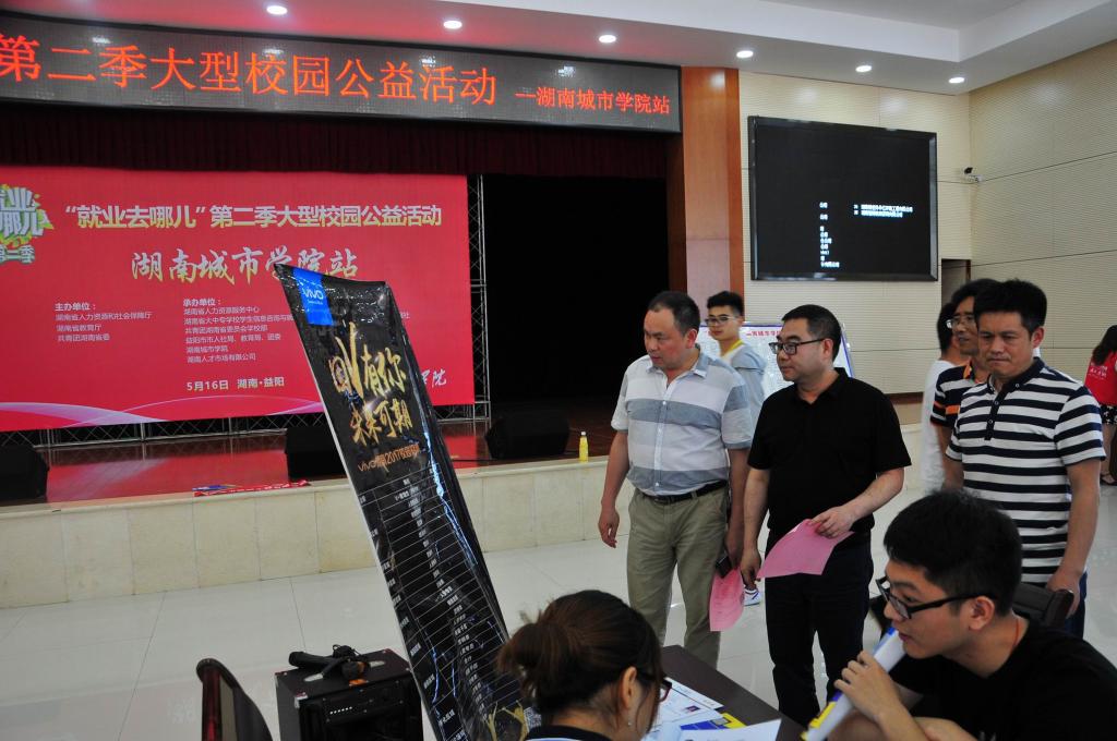 (本网讯)5月16日下午,湖南省“就业去哪儿”第二季大型校园公益活动在我校第二办公楼学生活动中心隆重举行。副校长郑卫民、招生就业处全体工作人员以及各二级学院师生几百人参加了此次活动。