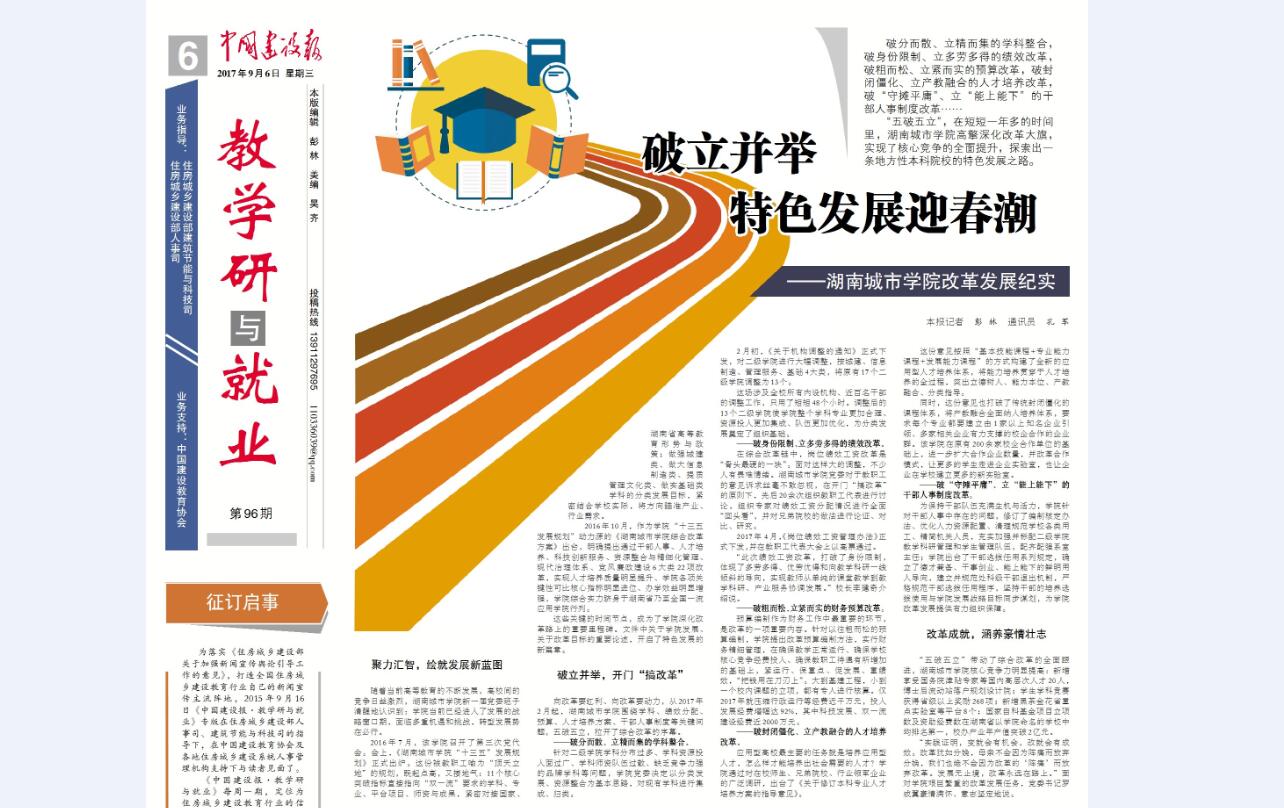 (本网讯)9月6日出版的《中国建设报》第六版发表记者署名文章,以《破立并举 特色发展迎春潮》为题,专题报道我校第三次党代会以来改革发展成就。