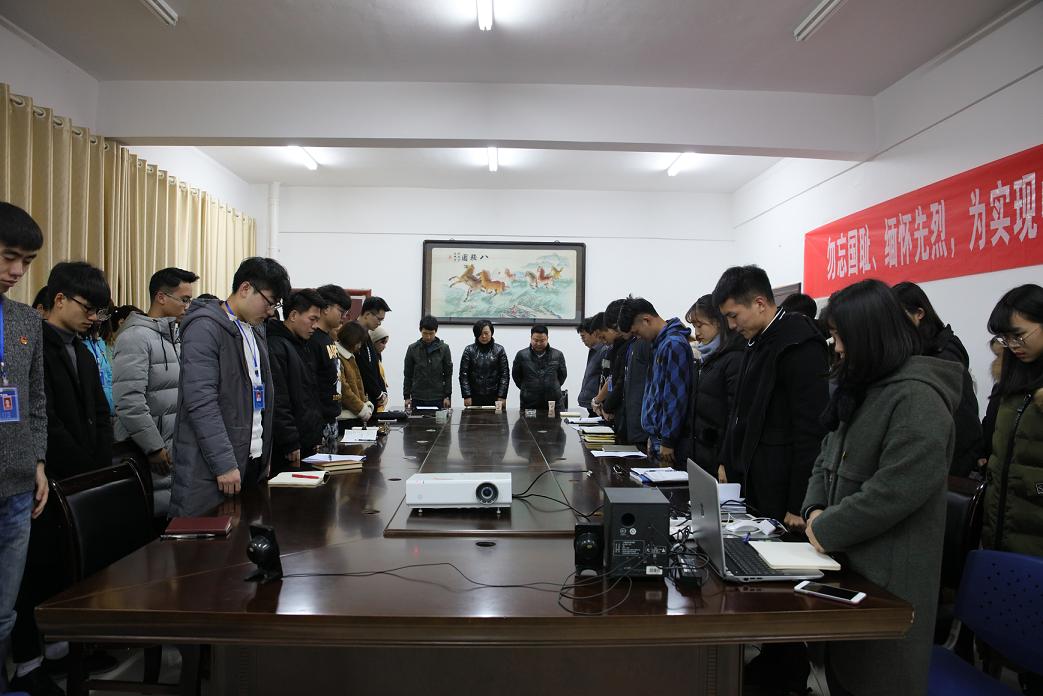 (本网讯)12月13日是南京大屠杀者国家公祭日。晚7时,由宣传部、校团委组织“南京大屠杀死难者国家公祭日”纪念活动在第二办公楼518室举行。宣传部、校团委相关负责人,学生会主要干部,“习近平新时代中国特色社会主义思想读书会”成员,部分学生代表参加活动,并在纪念横幅上签名。