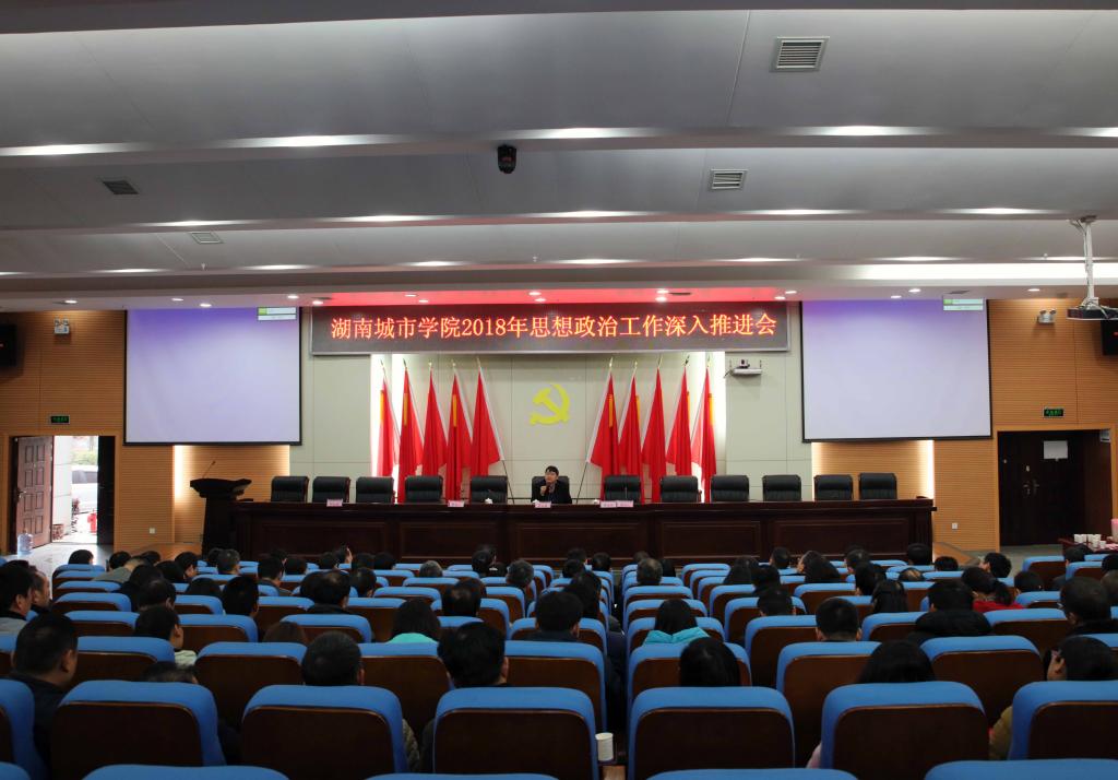 (本网讯)为深入学习贯彻党的十九大精神和全国、全省高校思想政治工作会议精神,进一步加强和改进新形势下我校思想政治工作,3月6日下午,我校2018年思想政治工作深入推进会议在图书馆报告厅召开。校党委书记罗成翼、校长李建奇、党委副书记汤放华、纪委书记姚春梅,副校长郑卫民、雷存喜出席会议。会议由李建奇主持。