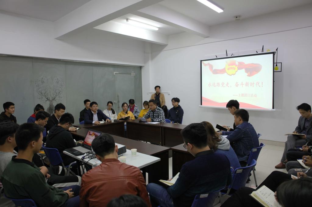 围绕“永远跟党走,奋斗新时代”活动主题,学生代表们结合自身情况及专业特点,就习近平新时代中国特色社会主义思想读书会活动、学风建设、“爱校同心”校园文化建设、“龙城”周末社团文化大道建设、文明寝室建设等情况踊跃发言。