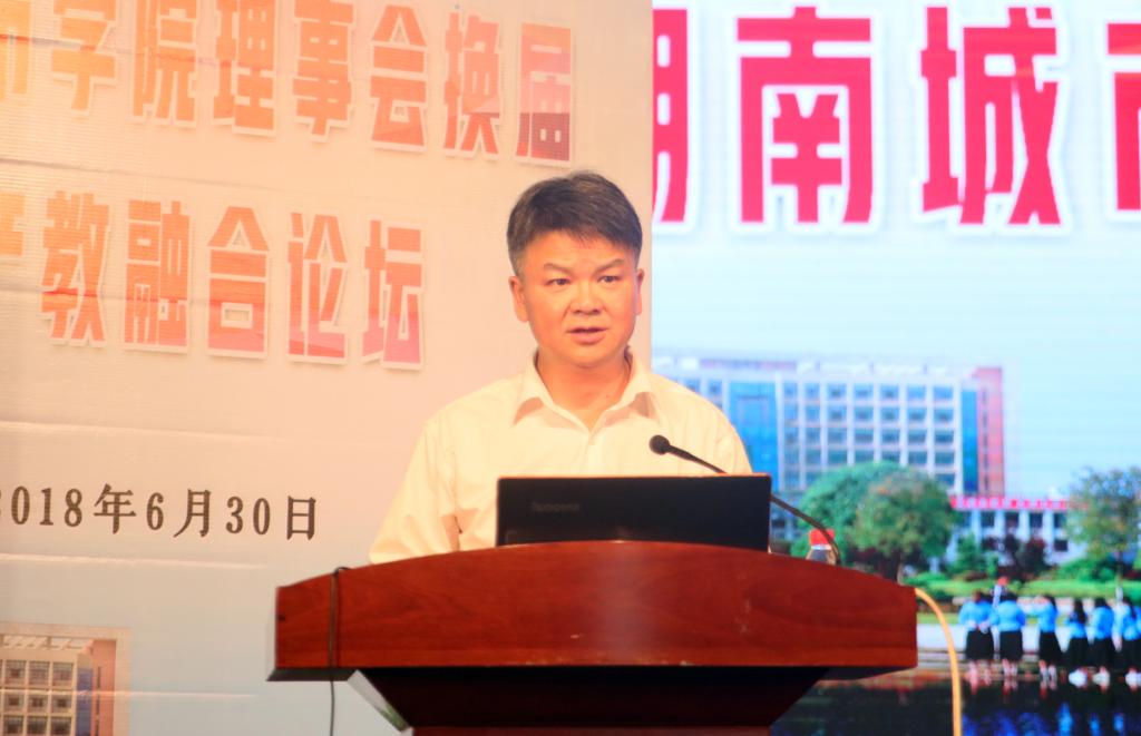 (本网讯)6月30日,火博电竞(中国)有限公司_官网理事会换届暨产教融合论坛在学校音乐厅隆重举行。