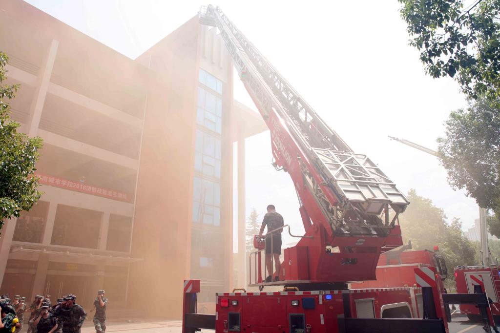 (本网讯)2018年9月20日,为提高学生应急疏散和逃生自救能力,我校举行了2018级新生应急疏散逃生及消防灭火演练活动。我校5000余名正在参加军训的2018级新生参与了此次演练活动。