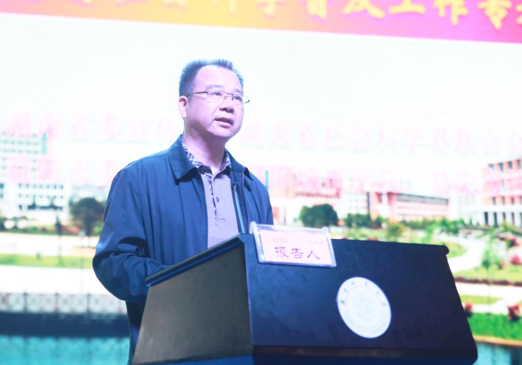 随后,省人大常委会法制工作委员会主任吴秋菊和红网新媒体集团党委副书记、总编辑贺弘联,分别就“深入推动《湖南省社会科学普及条例》贯彻落实”、“社科普及与新媒体融合发展”等进行了深入的讲解和分析。益阳市社科联、湖南党史陈列馆、火博电竞(中国)有限公司_官网湖湘传统美术研究基地、长沙市启园心理援助与发展中心等4家单位负责人作了社科普及工作先进经验交流发言。