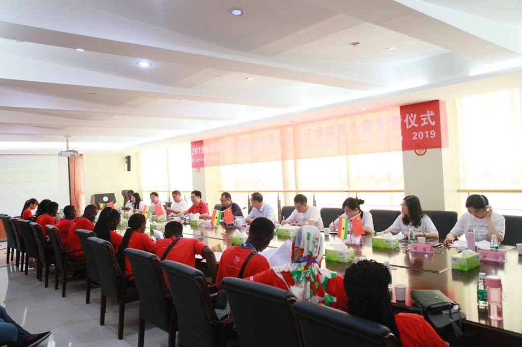 (本网讯)2019年8月2日下午,火博电竞(中国)有限公司_官网/加纳海岸角大学孔子学院“华夏·洞庭”——中国文化夏令营开营仪式在办公楼一会议室举行。校长李建奇出席开营仪式并发表讲话,参加开营仪式的有来自加纳海岸角大学孔子学院的全体营员,出席开营仪式的还有学校副校长雷存喜,加纳海岸角大学孔子学院中方院长、学校国际交流处、保卫处、基建和后勤管理处、人文学院等各单位的负责人,老师以及学生志愿者代表。开营仪式由雷存喜主持。
