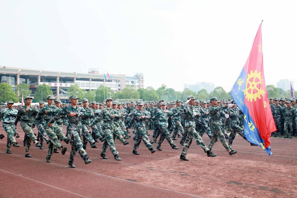 (本网讯)2019年9月25日,我校2019级新生军训汇报暨总结表彰大会在学校田径场举行。来自全校12个学院的5788名新生身着戎装,以整齐划一的动作和昂扬的精神状态展示军训成果,接受检阅。在家的校领导,军训领导小组成员、二级学院党委(党总支)书记、副书记、新生辅导员等一同观看了汇报表演。大会由校长李建奇主持。
