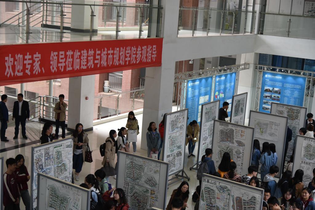 闭幕式后,与会领导、带队教师和学生一起在建筑规划楼二楼中庭参观了获奖作品展/金倩 图/博夕