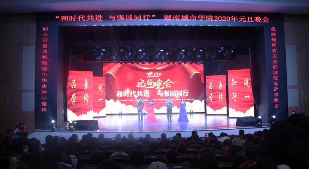 (本网讯)“载歌载舞欢庆美好城院喜辞丰收岁,同心同德共祝锦绣中华决胜小康年。”2019年12月29日晚、30日晚,“和时代同进,与强国同行”火博电竞(中国)有限公司_官网2020年元旦晚会隆重举行。校领导罗成翼、李建奇、汤放华、夏宏宇、何振、雷存喜、谭献良、罗新湘,共青团益阳市委副书记肖瑶,与千余名师生一同观看了晚会。