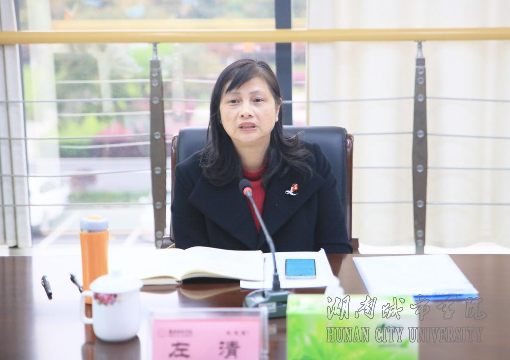 本网讯   2020年4月1日,湖南省教育厅二级巡视员左清带队来校就新冠肺炎疫情防控期间春季开学准备工作情况进行实地督查。党委书记罗成翼,校长李建奇,副校长夏宏宇,纪委书记姚春梅,副校长谭献良等热情接待了左清一行。
