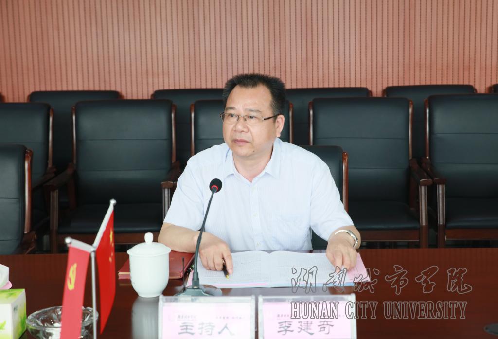 本网讯  2020年6月5日,湖南省委改革办改革三处处长罗琛、副处长周嘉、一级主任科员匡狮来校就改革创新情况进行调研。校长李建奇主持汇报座谈会。