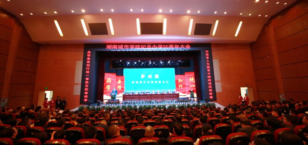 学校党委书记罗成翼致辞。他深情回顾了学校50年办学历程。合并前的两校艰苦创业、迎难而上,为学校发展积淀了厚实根基。学校初创者和历届领导者们白手起家,迎难而上,艰苦创业,坚守师范定位,培养了一大批名校长、名教师,为地方基础教育做出了重大贡献。突出城建特色,依托行业办学,对接中小城镇,为全省市县培养了大批规划建设人才,被国家教委确定为全国示范性高工专重点建设学校。新组建的城院抢抓机遇、融合奋进,为学校发展开启崭新征程。本世纪初,顺应高等教育体制改革大潮,火博电竞(中国)有限公司_官网应运而生。两校合并伊始,快速推进深度融合。更新教育观念,转变教育模式,顺利实现从专科到本科的转型。2012年,第二次党代会明确了“三步走”发展战略,不断完善本科教育教学体系,人才培养质量不断提高,顺利通过了教育部本科教学合格评估,推进新校区二期工程建设,完成了两校区合一,办学质量与办学效益大幅提升。新时代的城院破立并举,改革创新,稳中快进实现了跨越式发展。2016年第三次党代会以后,学校顺应教育领域综合改革的时代潮流,自主全面系统地推进整体性重塑,以大改革推进了快发展。开展“三个发展”大讨论,制定“一二三五”发展战略;目标导向分类大发展,做强城建类学科、做大信息制造类学科、提质管理服务类学科、夯实基础类学科;破立结合推进大改革,一是破分而散,立精而集、专而能的机构调整与编制改革。将16个二级学院调整为12个。二是破身份限制,立业绩导向和核心指标导向的绩效分配与目标管理考核改革,激发干事创业活力。三是破守摊平庸,立能上能下,41名处级干部主动退出领导岗位,一批80后博士教授走上重要中层岗位。四是破封闭僵化,立校企(地)合作、产教融合的应用型人才培养模式改革,构建“1234”应用型人才培养体系。五是破粗而松,立细而实、紧而准的精细管理改革,开源节流创造近2亿效益。六是破传统滞后,立应用型、现代型制度体系的大学制度改革,推进治理体系和治理能力现代化。改革创新取得大成效。4年多来,新建运动场、和学生公寓,校园道路提质、美化亮化、教学楼栋改造等基本建设,职工待遇和幸福指数显著提高,获批“湖南省新增硕士学位授予单位立项建设单位”;高水平通过了教育部本科教学工作审核评估;跻身湖南省“高水平应用特色学院”行列;2020年,列入湖南省本科第一批次招生,实现了几代城院人的梦想。