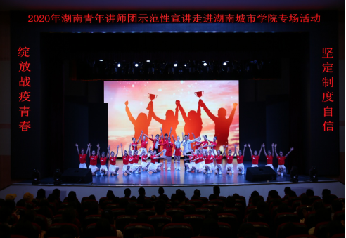 活动以我校大学生艺术团的《新时代 新城院》原创快板书表演开场。湖南省青年讲师团的陈科文、王皓、董青、张乐蒙、朱威宏五位讲师走进火博电竞(中国)有限公司_官网,从自身的工作实际和典型事迹出发,向同学们分享了他们的抗“疫”故事,还原了抗“疫”一线画面。