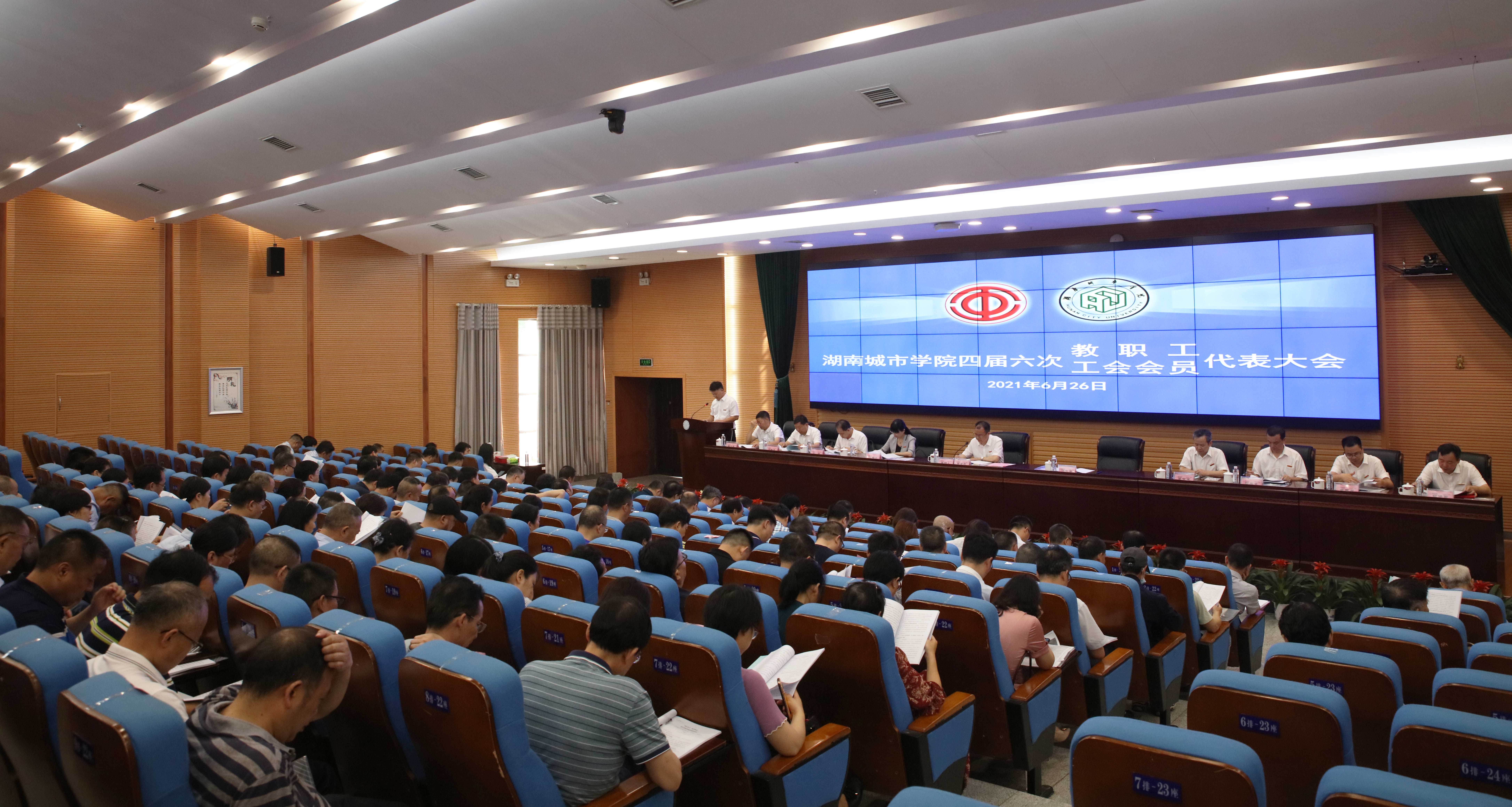 本网讯 2021年6月26日,火博电竞(中国)有限公司_官网第四届六次教职工、工会会员代表大会在图书馆报告厅召开。135名正式代表以及列席代表、特邀代表出席会议。校领导李建奇、汤放华、何旭娟、夏宏宇、何振、雷存喜、谭献良、袁志成、陈列尊、吕贤军在主席台就座。大会由党委书记李建奇主持。