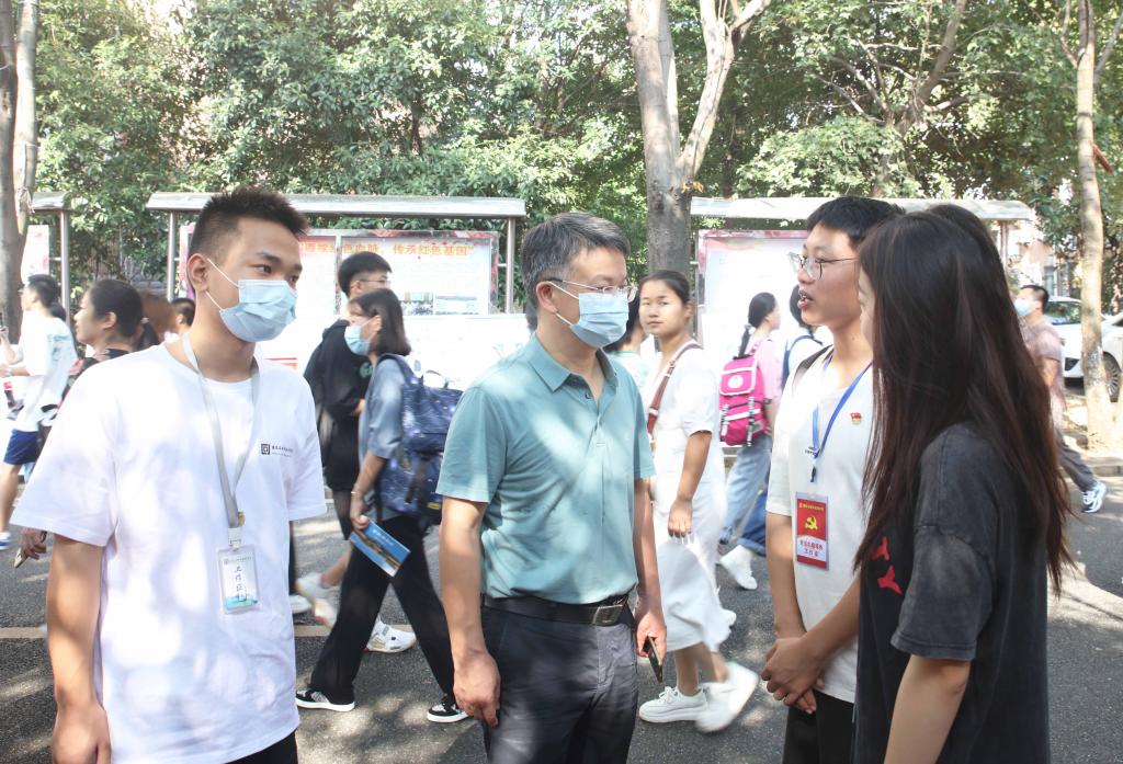 9月12日下午3:30和13日上午8:30,党委书记李建奇,校长汤放华,副校长雷存喜、袁志成,纪委书记陈列尊等校领导在相关职能部门负责人陪同下,先后来到院系迎新现场看望新生。在各学院报到处,李建奇、汤放华等校领导详细了解了新生招录和报到情况,向现场迎新的工作人员和学生志愿者表示慰问,并与新同学亲切交流。他们勉励同学们尽快融入大学生活,好好学习、刻苦钻研,在自己的专业领域取得优异成绩,成为一个对国家对社会有用的人。