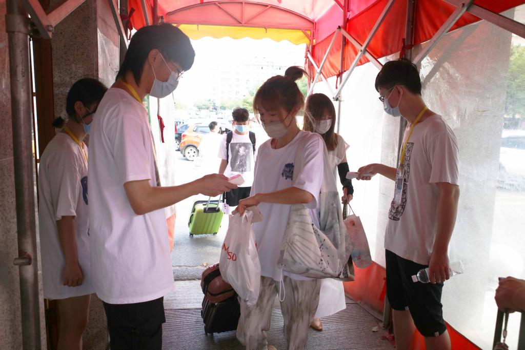 为了保障迎新工作顺利开展,学校各部门通力合作,推进信息化、人性化和便捷化服务,多举措暖心迎“萌新”。在学校南门和北门入口处,在学生志愿者的温馨提示和耐心服务下,新生须出示健康码、行程码,并接受体温测试,这是今年我校2021级新生入校首先必须完成的一套防疫规定动作。学校还在现场准备了洗手液、口罩等防疫物品,用心用情织密织牢校园防疫网,为新生顺利报到保驾护航。