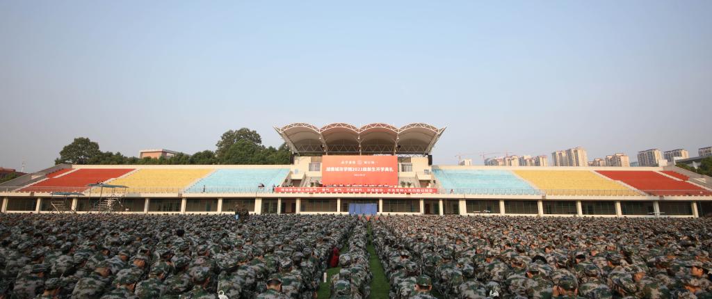 开学典礼后,学校举行了2021级新生军训动员大会。
