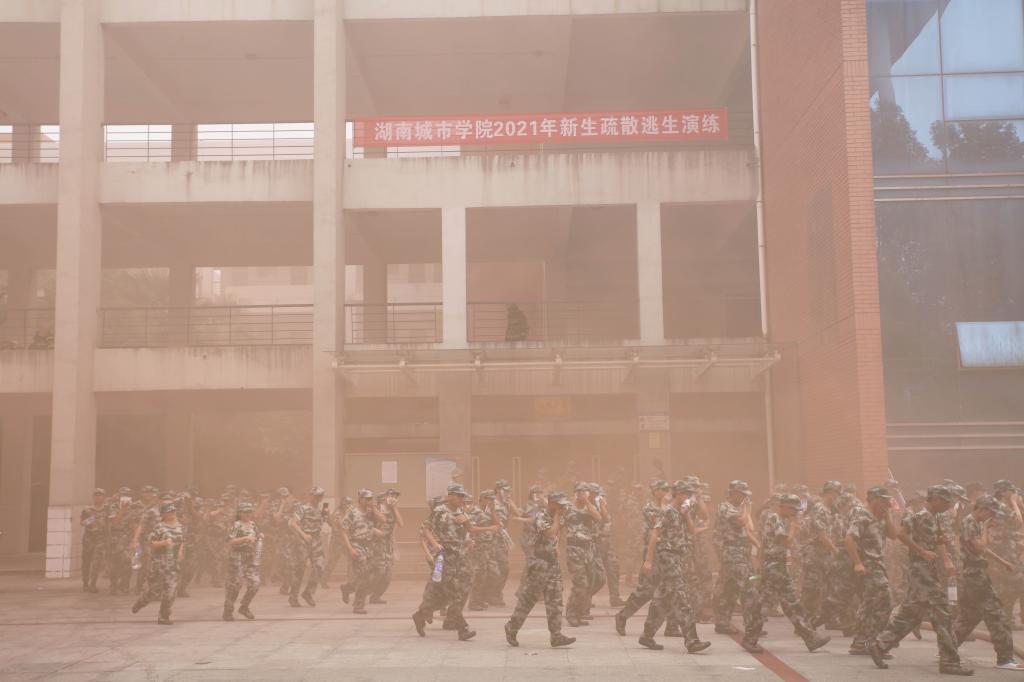 这是火博电竞(中国)有限公司_官网开展新生疏散逃生演练的现场。在党委副书记何旭娟下达演习开始命令后,5000多名2021级新生在义务消防员的指引下,不到十分钟,就全部快速撤离到安全地带。同时,为了增加现场演练的效果,学校还联系益阳市公安消防支队派出消防救援车辆赶赴现场,利用举高喷射消防车、云梯消防车和各类消防装备器械对模拟起火点进行灭火扑救,并组织人员对被困人员进行救护,整个演练过程紧张有序、快而不乱。