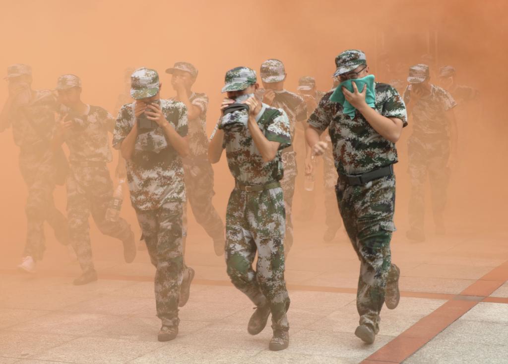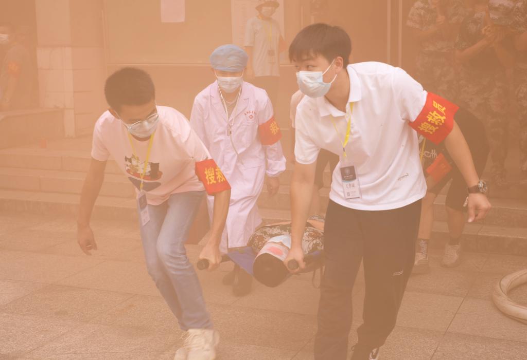 本网讯(记者 文彦波 摄影 博夕)“铃!铃!铃!”9月28日中午12时许,火博电竞(中国)有限公司_官网第二教学楼内突然传来一阵急促刺耳的警报声,滚滚浓烟从楼内各处漫出,一名名身着迷彩装的青年学子用湿毛巾捂住口、鼻,弯着腰迅速从楼内撤出,与此同时,校园里响起消防车的警笛声……