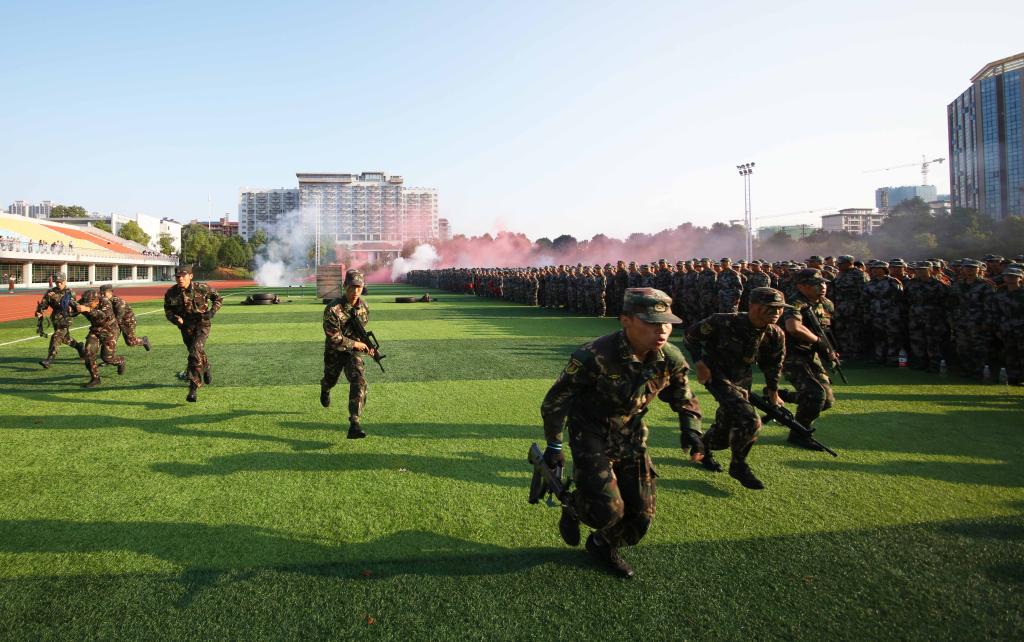 党委副书记、校长汤放华宣布军训成果汇报表演开始。
