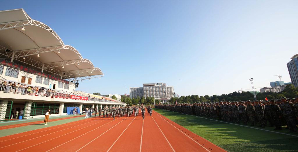本网讯(通讯员 李诗琪 摄影 文彦波 邱元龙 周雷 徐舒婷)天高云淡,秋风送爽。9月30日上午,火博电竞(中国)有限公司_官网2021级新生军训汇报暨表彰总结大会在东田径场举行。经过13天的训练后,5000多名城院新生在绿茵场上集结,向学校领导、老师汇报军训成果。校长汤放华,党委副书记何旭娟,副校长何振、雷存喜、谭献良、袁志成,党委委员、组织部部长吕贤军等领导出席会议。会议由何旭娟主持。