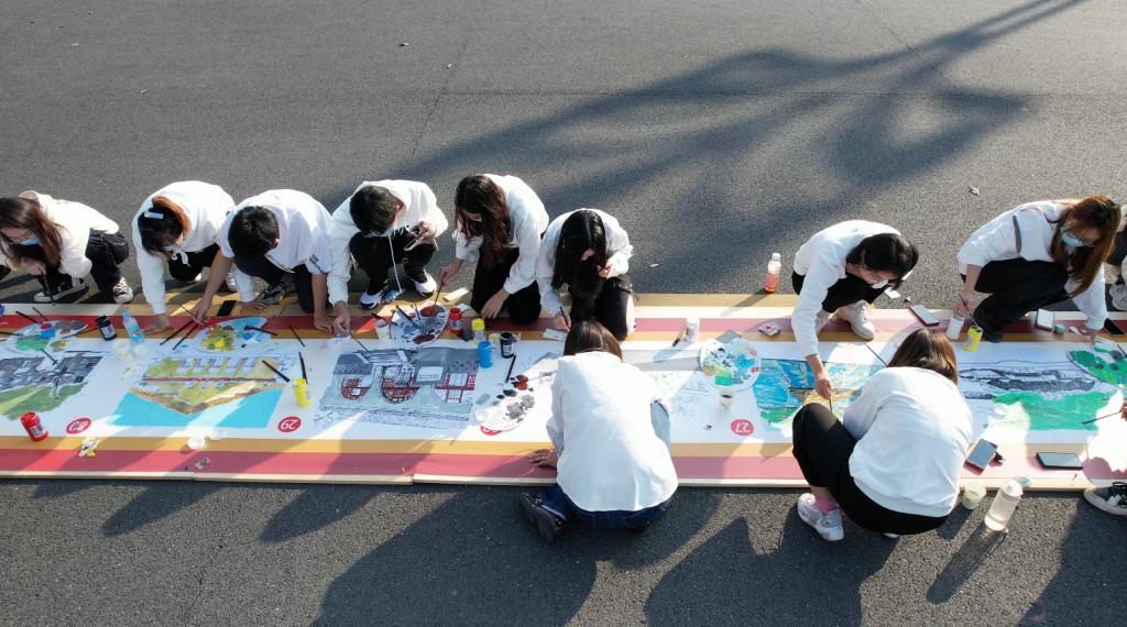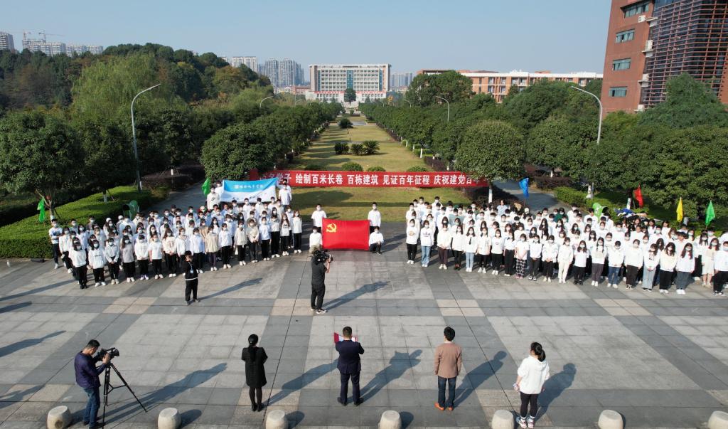 【党史学习教育】火博电竞(中国)有限公司_官网百名学子绘制百米长卷 百栋建筑见证百年历程