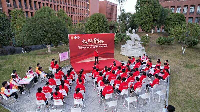 12月4日下午,一场别开生面的读书活动在学校鲁班园举行。这是火博电竞(中国)有限公司_官网大学生“学习习近平新时代中国特色社会主义思想读书会”举办的“学习党的十九届六中全会精神”专题读书活动,也是今年该“读书会”举办“党史照亮青春路”系列活动的第12场读书沙龙。指导教师导学、学生自主讨论发言、击鼓传花知识问答、师生合唱红色歌曲……多样化的学习形式把现场气氛一次又一次推向高潮。