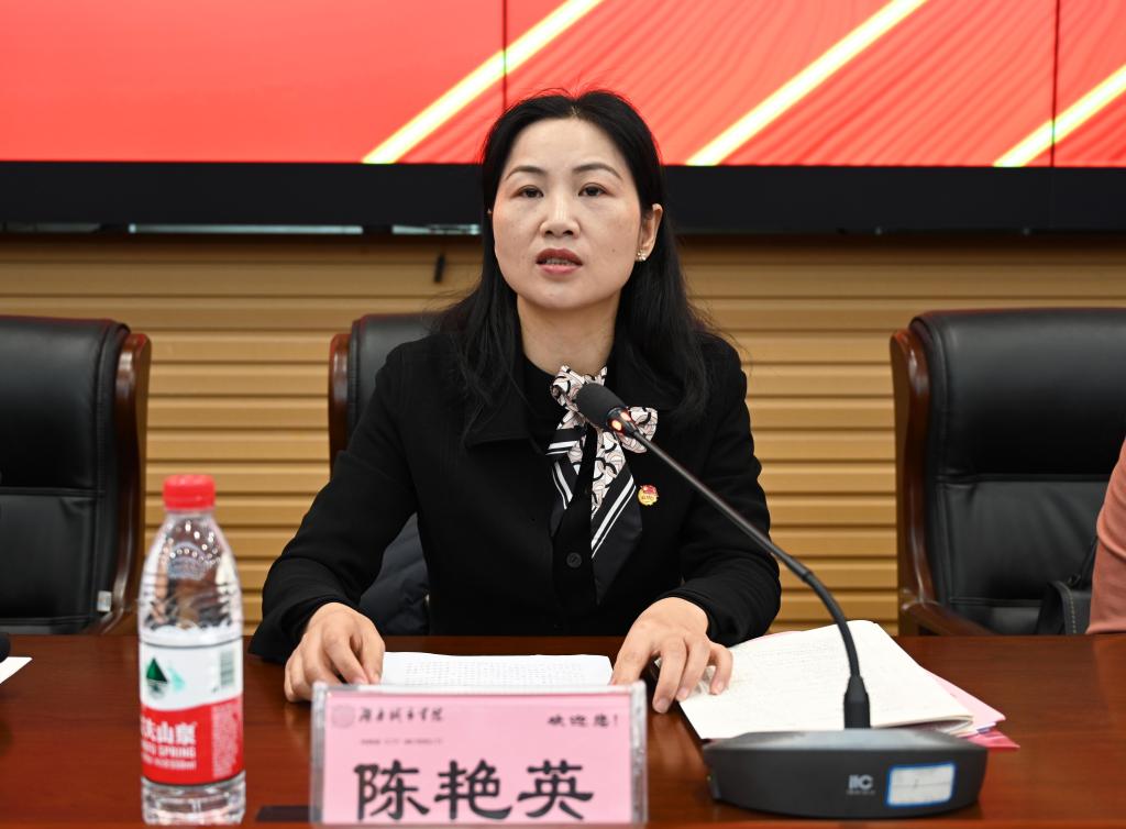 陈艳英代表共青团湖南省委向大会的召开表示祝贺,向我校广大团员青年致以诚挚的问候。她指出,近年来火博电竞(中国)有限公司_官网团委解放思想,担当作为,充分发挥组织优势,积极履行职能,做了大量卓有成效的工作,为全省共青团工作作出了积极贡献。她勉励广大团员青年把握政治方向,坚定理想信念,练就过硬本领,自觉担当光荣使命,拼搏进取、开拓创新,在推进全面建设社会主义现代化新湖南中贡献青春力量。