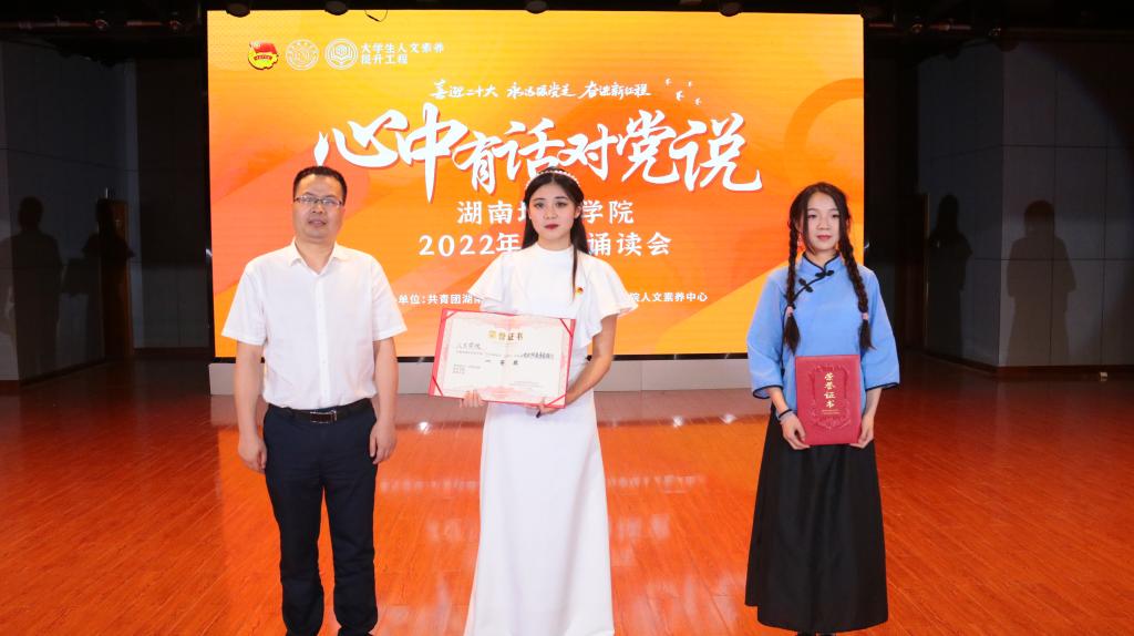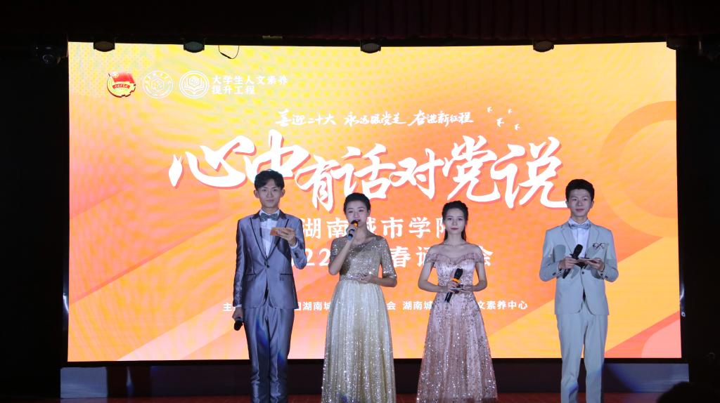 本网讯(通讯员 郭霞)为庆祝中国共青团成立一百周年,抒发广大团员青年对党的无限热爱和美好祝愿,营造爱国爱校、同心奋进的良好校园文化氛围,深入推进“大学生人文素养提升工程”,2022年5月21日晚七点,我校“心中有话对党说”青春诵读会在学生活动中心举行。