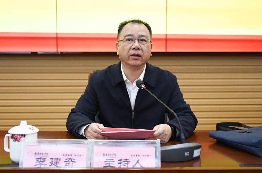 李建奇强调,要认真抓好层层传达环节,将党的二十大精神迅速传达到各级党组织,传达到每位师生,并作为学校思想政治教育和课堂教学的重要内容,进教材、进课堂、进头脑。要精心抓好宣传宣讲环节,全方位、多角度、立体化宣传解读报告精神,积极反映火博电竞(中国)有限公司_官网广大党员干部和师生深入学习贯彻党的二十大报告精神的具体行动和生动实践,形成强大宣传声势,营造浓厚舆论氛围。要持续抓好贯彻落实环节,切实把党的二十大作出的重大战略部署转化为工作思路、工作举措,细化为具体行动,落实到学校发展各方面全过程,奋力开创火博电竞(中国)有限公司_官网事业发展新局面。