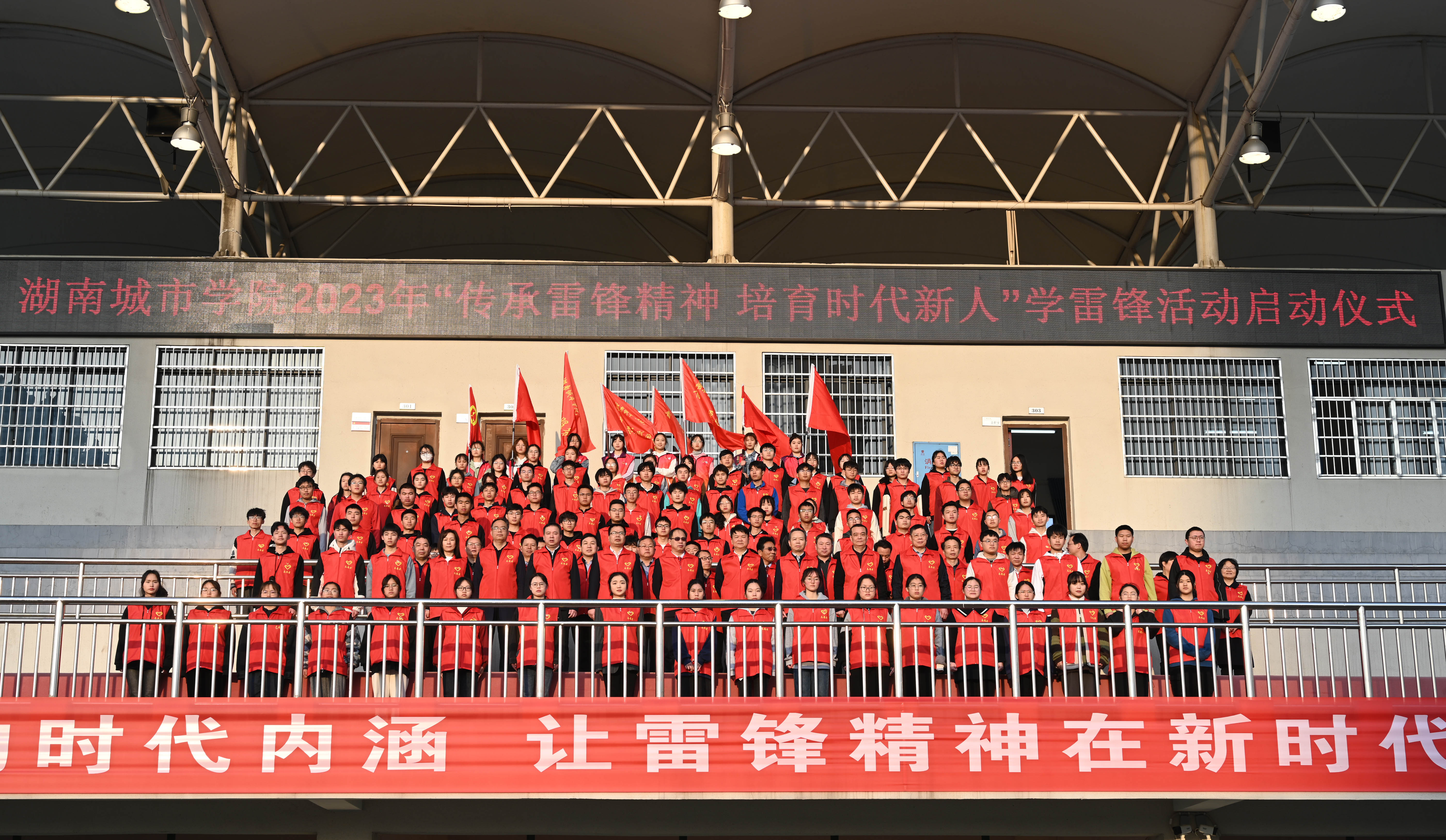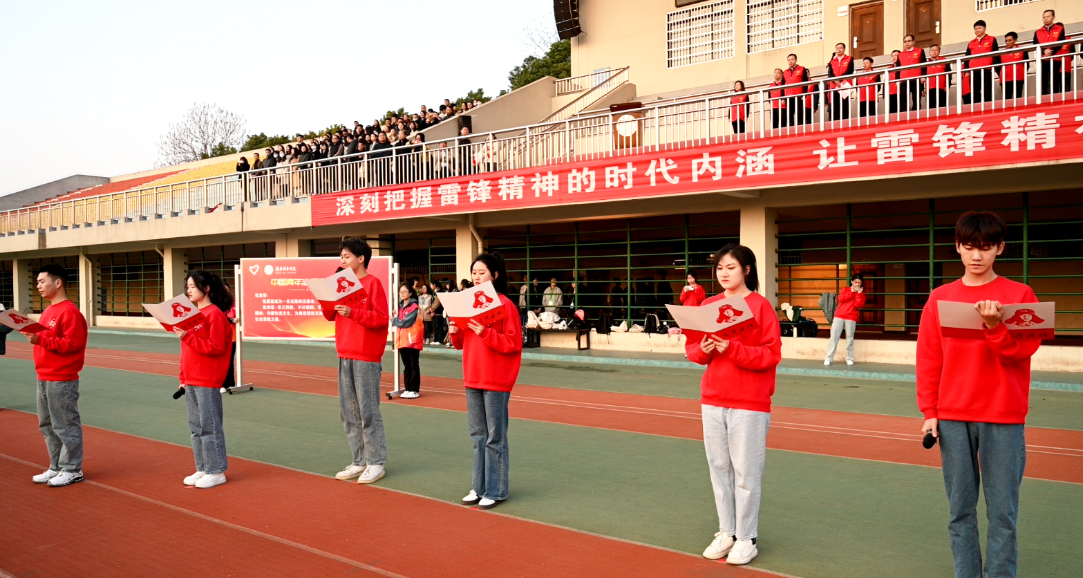 本网讯(通讯员 成婷妹 陈嘉豪)“我宣誓,我愿意成为一名光荣的志愿者……”3月6日上午,火博电竞(中国)有限公司_官网在东田径场举行“传承雷锋精神,培育时代新人”学雷锋活动启动仪式。全体校领导、学校德育工作领导小组成员出席活动,各二级学院党委书记、副书记,二级学院团委书记、全体辅导员,大一学生,学生志愿者代表参加活动。学校党委委员、副校长袁志成主持活动启动仪式。