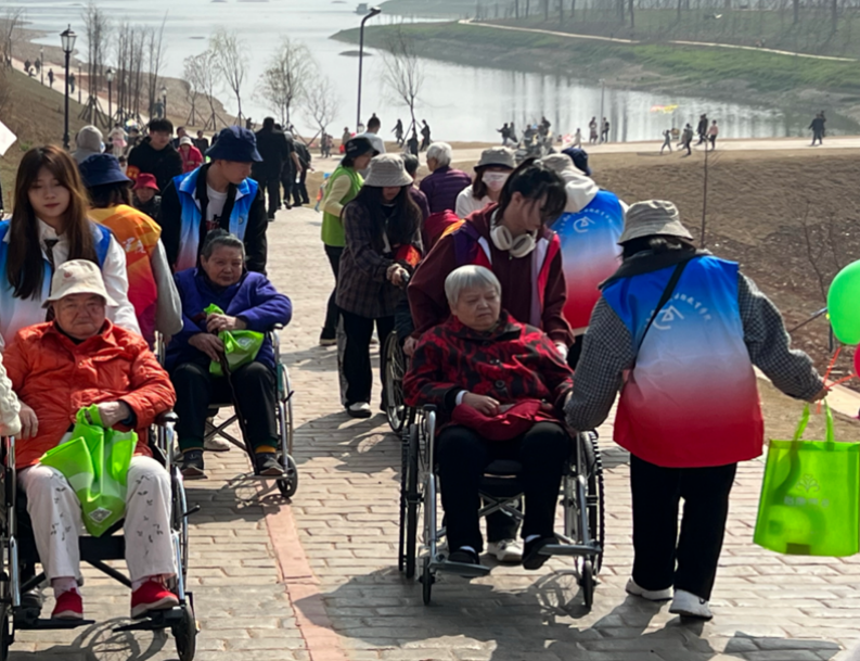 3月4日,美术与设计学院/国际教育学院组织了20余名志愿者前往益阳市怡康老年护理院开展“学雷锋精神  温暖老人心”志愿活动。志愿者们为老人们购置了营养品,并在现场宣传普及“防诈骗”“春季高发疾病”等知识。“电信网络诈骗是指犯罪分子通过电话、网络和短信方式,编造虚假信息,设置骗局,诱人上当。”“春季天气多变,是传染病进入易发和高发的季节。若平时不注意室内空气流通,很容易发生呼吸道传染性疾病的流行。”志愿者们耐心细致地为老人们发放传单并进行现场解说。为丰富老人们的生活,志愿者们精心准备了唱歌、朗诵等才艺表演,情绪高昂的红色歌曲,铿锵有力的朗诵,轻盈优美的舞蹈赢得了在场老人们的喝彩。怡康老年护理院负责人表示,“青年志愿者的热情深深地感染了我们的工作人员。希望有更多的人能参与到关爱老人的志愿服务活动中来。”随后,志愿者们用轮椅推着老人们进行了户外自由活动。
