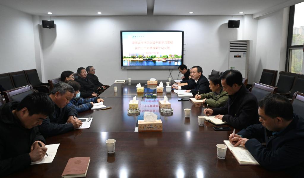 据了解,我校“学习贯彻党的二十大精神处级干部培训班”历时近三个月,共组织了7场专题辅导报告。培训班还安排了个人自学、分组讨论、学员交流分享等环节。在讨论交流环节,按岗位属性分成党建、二级学院、教学、科研、学生、管理服务等6个小组,围绕“实施科教兴国战略,强化现代化建设人才支撑”开展了激烈讨论。此次培训班还邀请了部分教授、博士和科级干部听取了部分专题讲座,累计1200多人次参加了学习培训。