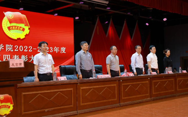 在激昂的国歌声中,表彰大会拉开序幕。副校长雷存喜宣读了《关于表彰火博电竞(中国)有限公司_官网第二届“活力团支部”和“城院之星”的决定》《关于表彰火博电竞(中国)有限公司_官网2022年度共青团工作先进集体和优秀个人的决定》。据悉,此次学校共评出“五四红旗团总支”4个,“优秀团支部”86个,“活力团支部”14个,“城院之星”18人,“优秀教师团干部”4人,“优秀共青团干部”273人,“优秀共青团员”376人。