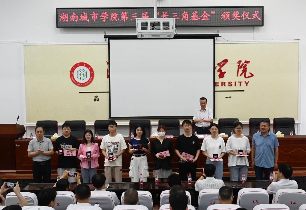 会上,雷存喜宣读了火博电竞(中国)有限公司_官网第三届“长三角校友基金青蓝计划”入选者名单。2023年,57名优秀城院学子勤奋学习,顺利考上了长三角地区高校的硕士研究生。与会领导和校友代表为他们颁发了奖学金。
