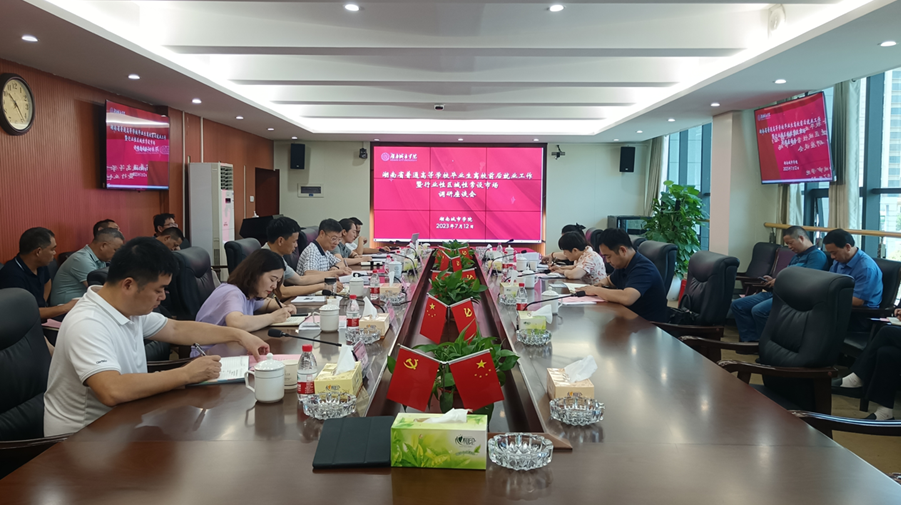 本网讯(供稿:招生就业处)7月12日上午,湖南省教育厅就业指导中心副主任曾静一行来我校调研省高校毕业生离校前后就业工作暨行业性区域性常设市场(益阳片区)建设工作,并进行座谈交流。学校纪委书记陈列尊主持会议,各二级学院党委书记,招生就业处、网络与信息管理中心以及湖南工艺美术职业学院、益阳医学高等专科学校、益阳职业技术学院有关负责同志参与调研。
