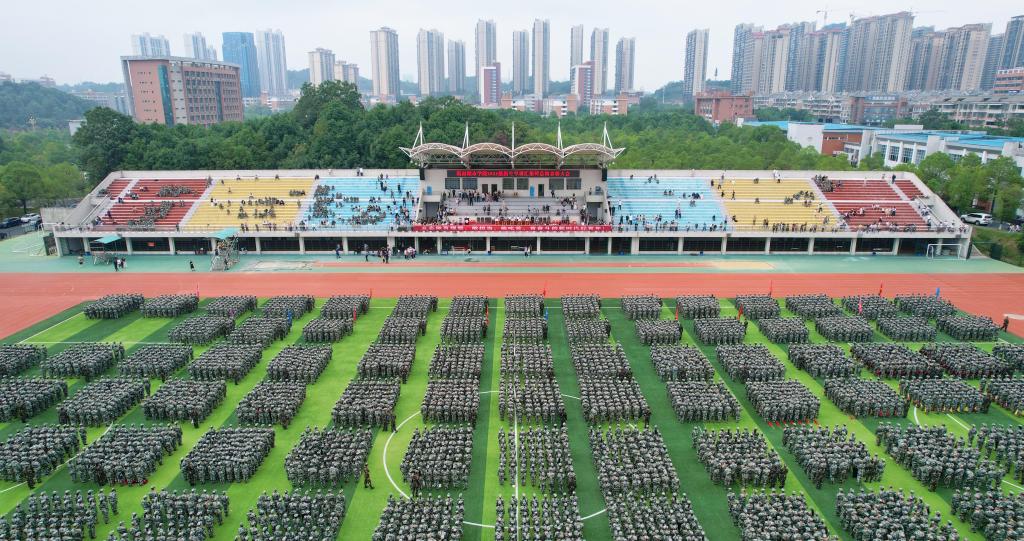 汇报表演中,《应急棍术》《战场医疗救护》《军体拳》等精彩节目轮番上演。由人文学院和理学院带来的旗舞飞扬方阵成为全场亮点。新生们英姿飒爽,步伐矫健,口号嘹亮,他们舞出的旗语操以其整齐划一的动作、虎虎生威的气势、团结协作的精神,熟练地用挥旗动作舞出“无声语言”;“杀!杀!杀!”324名捕俘刀队员动作干净利落、精准有力,个个威猛霸气,一招一式,尽显豪气;“砰!”爆破声后,操场硝烟弥漫,战友们演示“搜索前进”“滚进”“滑跪”等战术基础动作,干净利落,举止果断……现场热情高涨,掌声雷动,欢呼声不断。