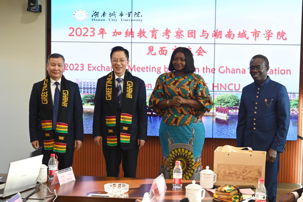 夏智伦代表湖南省教育厅向加纳教育考察团的到访表示热烈欢迎,简要介绍了湖南省教育总体情况以及火博电竞(中国)有限公司_官网依托加纳海岸角大学孔子学院在加强中非教育合作方面发挥的重要作用。他指出,随着中加关系蓬勃发展,各领域合作全方位展开,两国高等教育交流合作迎来了前所未有的大好机遇。希望双方能开展更多层次、更多领域、更多形式的教育合作,特别是共同把孔子学院办得越来越好,促进湖南省与加纳教育交流合作上新水平。